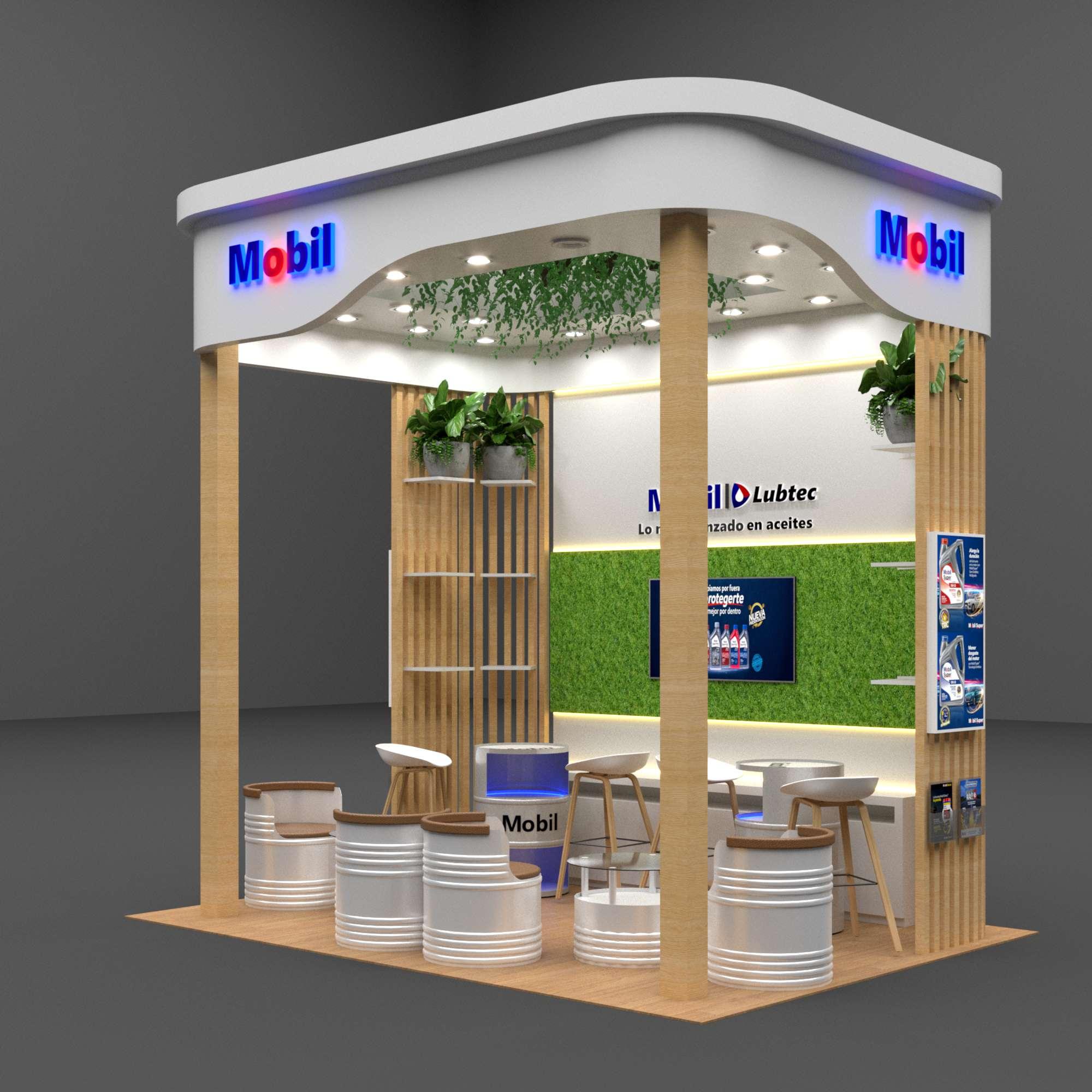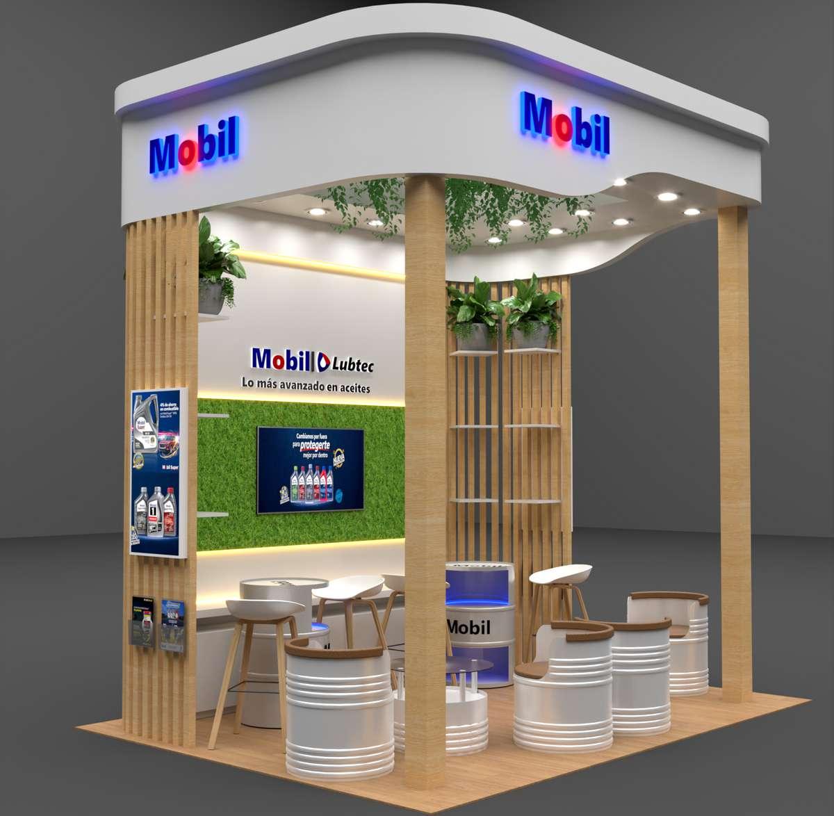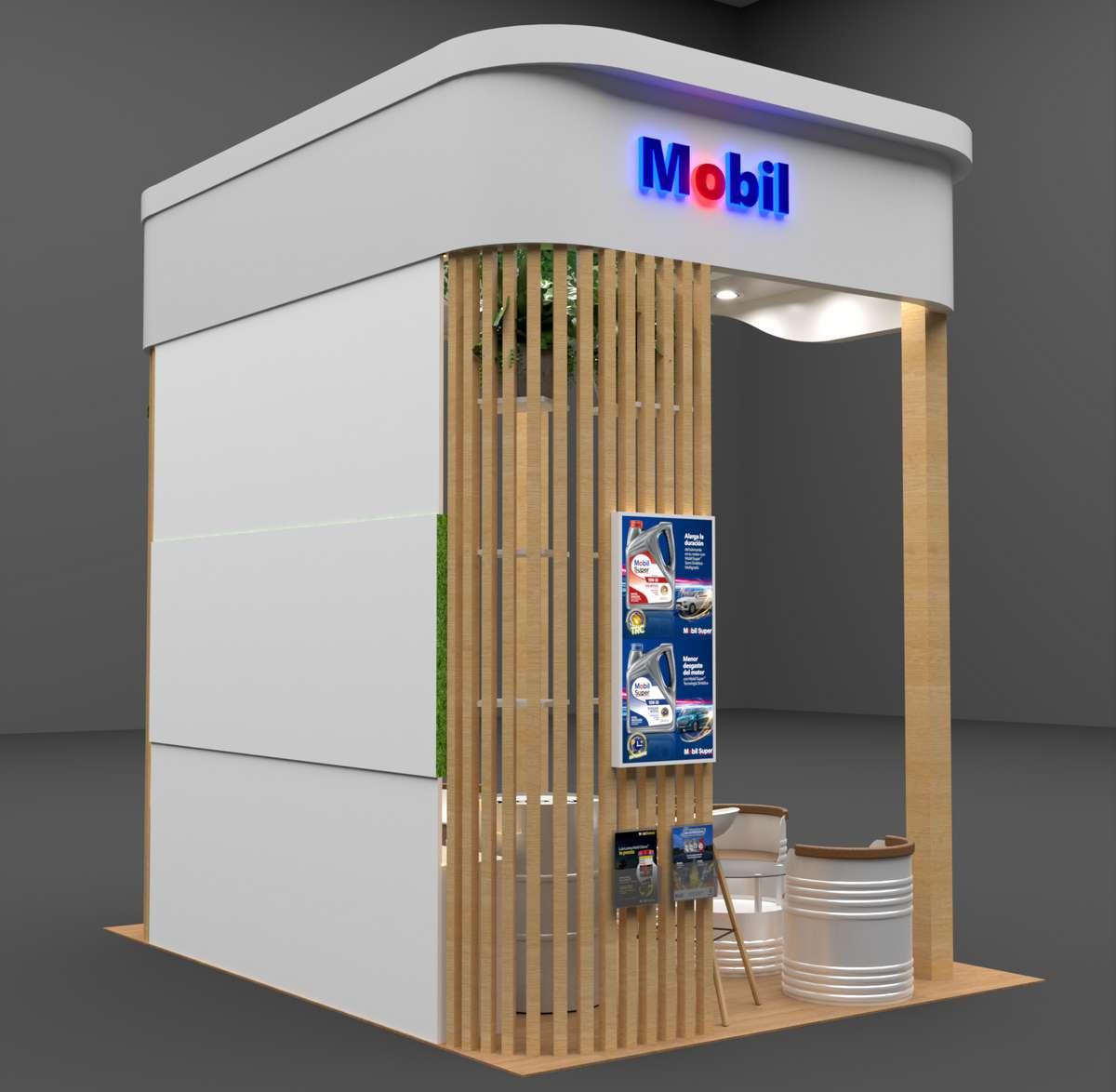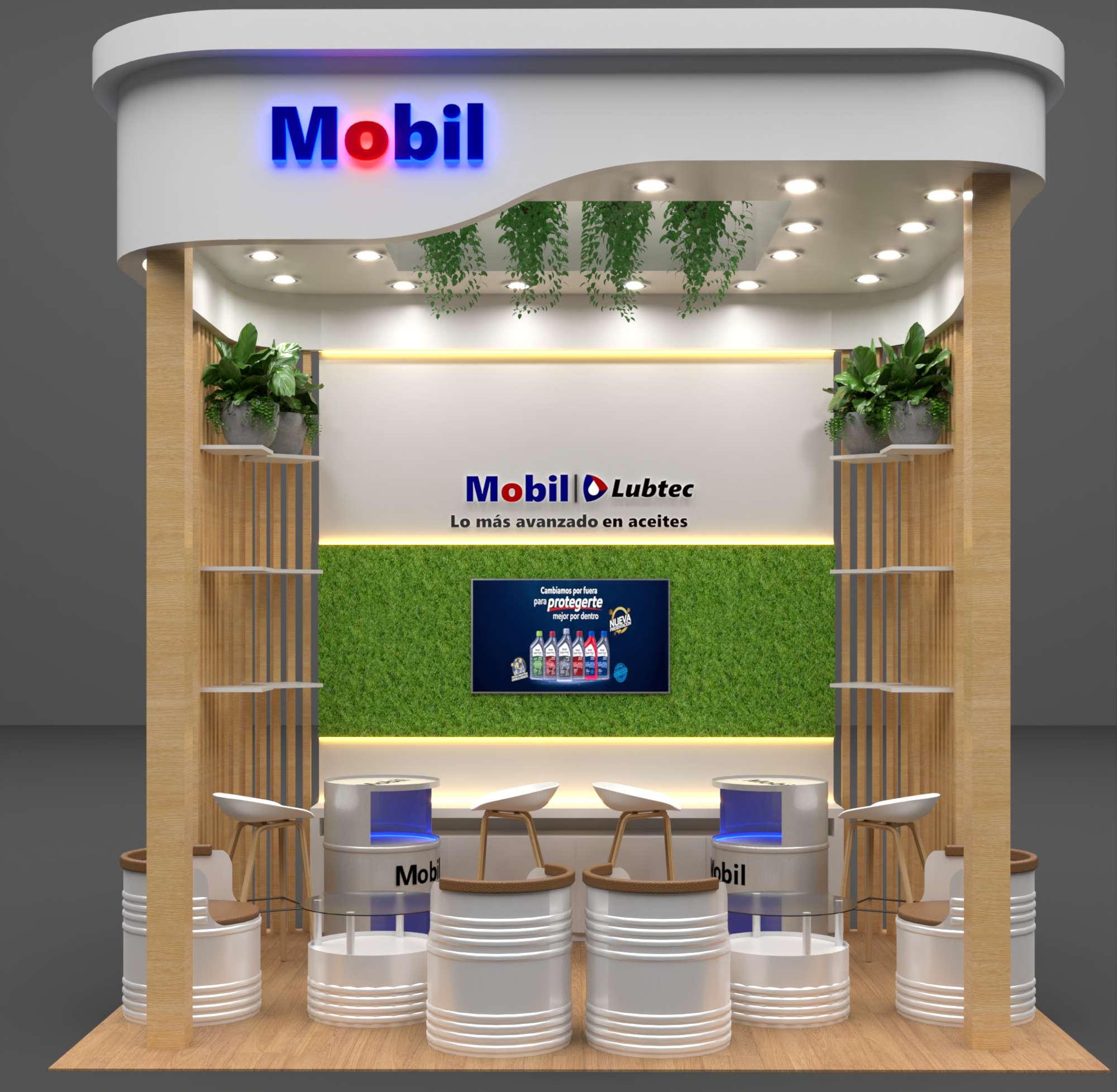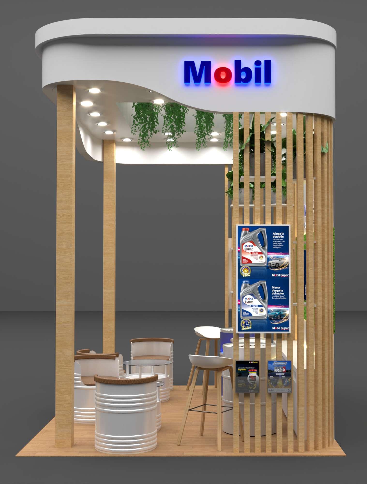 Modulo de venta Mobil, para la promoción de aceites y productos automotrices.