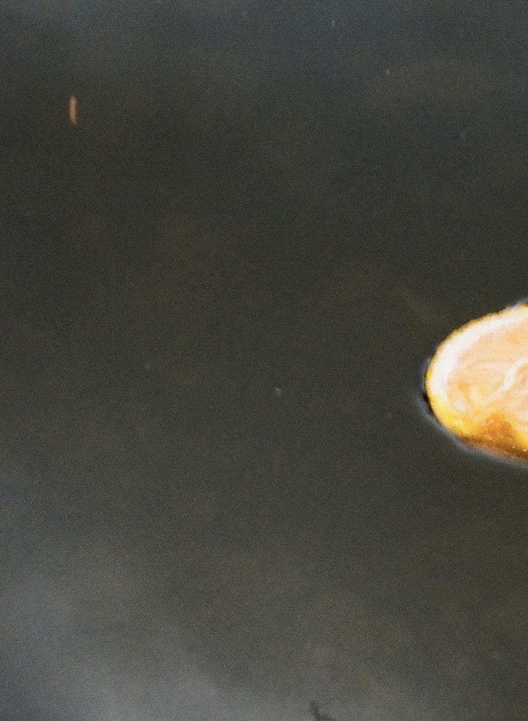 When I chose The Orange by Wendy Cope as the theme for this issue, I noticed it was carrying over into my daily life. I started seeing orange everywhere, in the evening sun that has started setting later and later, my cat Bertie, napping on the sofa, the Sainsbury’s bag I use for my shopping, the houses in my neighbourhood. Orange turned into a feeling, warm and sweet on my tongue. A hug is orange, the first cup of coffee is orange, falling asleep is orange. I saw what seemed like an unusual amount of oranges that had fallen in the roads, torn open to reveal their flesh. I did what anyone in my position would do and booked myself in to get a tattoo of an orange on my forearm. It’s a delicate tattoo, it looks so ripe one can imagine the stem coming right off. It would taste sweet and tangy and the juice would run down my chin, stick to my hands. I would have half, and I would give you each a quarter.