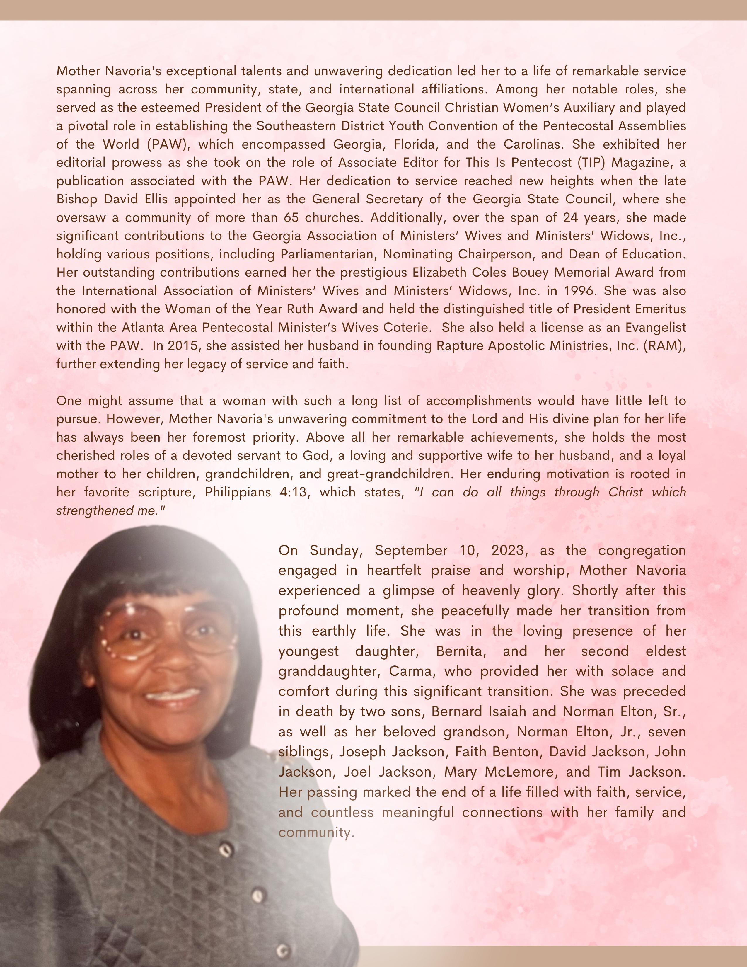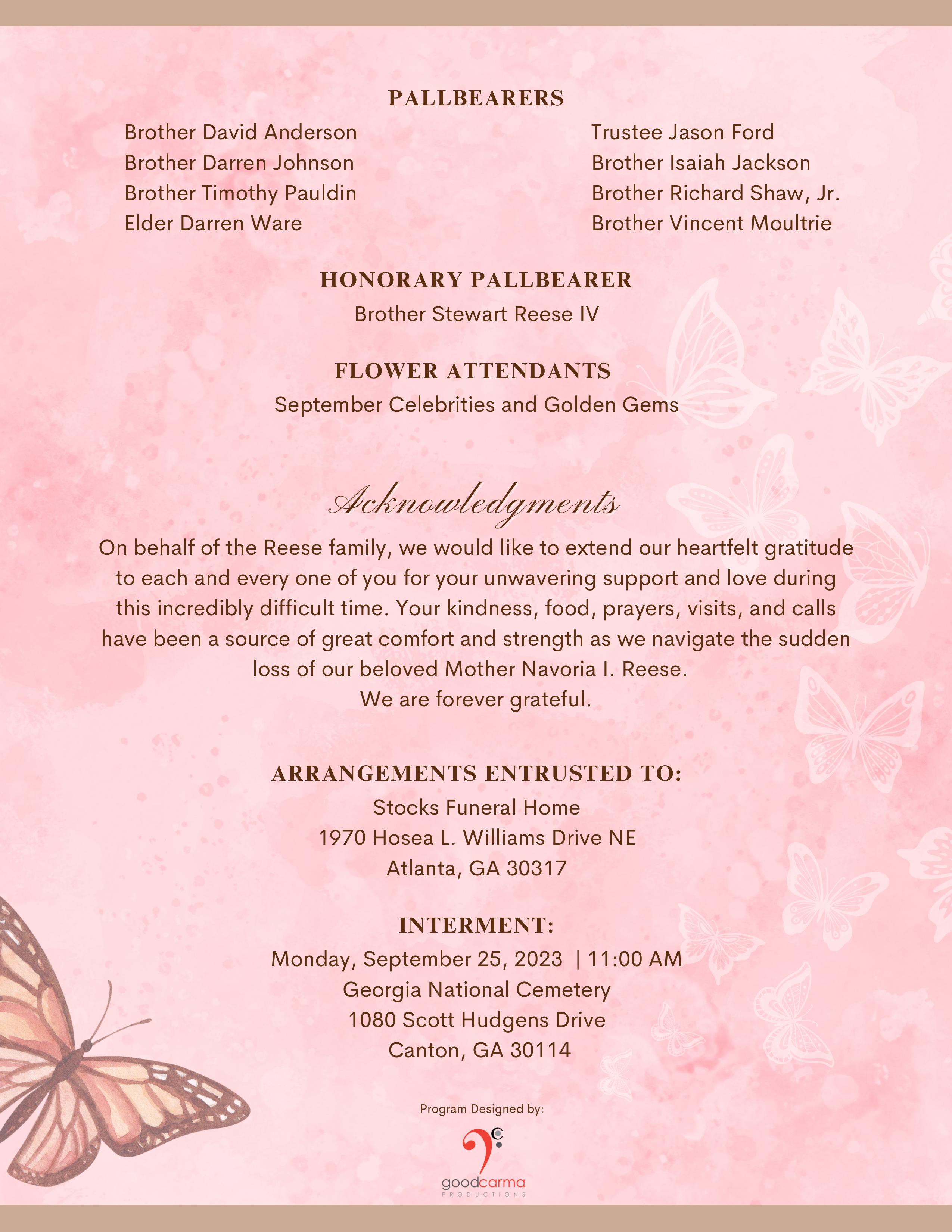 Mother Navoria I. Reese Program
