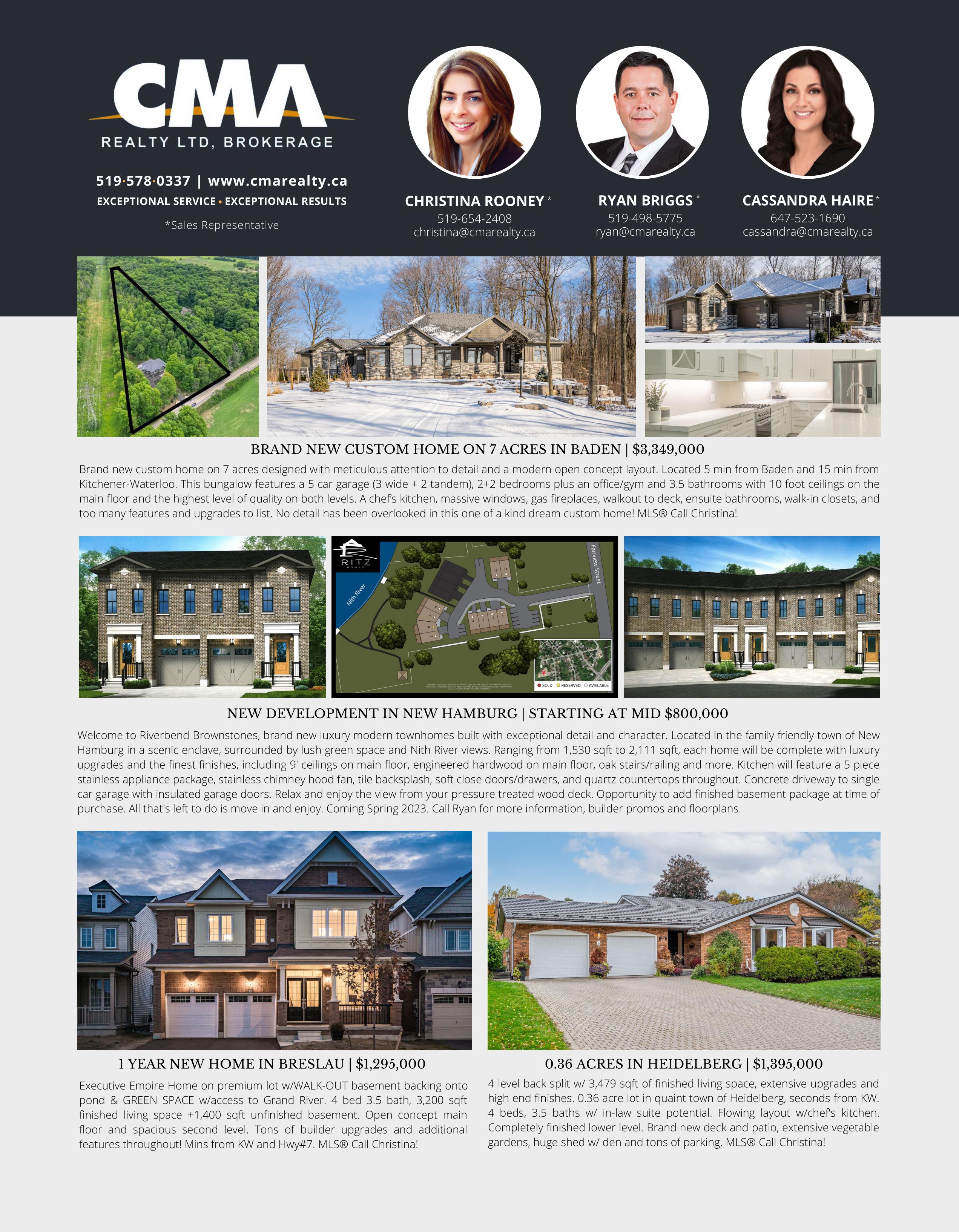 home. A spacious 5+ bedroom, 3 Bath home. Close to Hwy 401 and Hwy 403 access. Book a viewing today MLS# 40343898 $775,000 NEW HAMBURG Two-bedroom bungalow on a quiet dead end street. Professionally redesigned main floor newer kitchen, baths, & flooring. Large lot with perennial gardens. Move-in condition. Book a viewing today MLS# 40343774 KOEHLE Sales Representative direct 519 635 3171 shirley.koehle@gmail.com Shirley SOLD REALTOR 519.748.7057 Direct lance@lancenielsen.com LANCENIELSEN.COM REDANDWHITEREALTY.COM Buying or Selling? Have questions? Stay informed, with peace of mind and confidence. Moving Forward! Call now. Great Realtor! This is the second time we used Lance. He is knowledgeable, friendly and thorough. Lori & Jon A Member of The Waterloo Region Association of Realtors & The Toronto Regional Real Estate Board 519.572.0334 myp@royallepage.ca www.myprealestate.com MARGARET YONG PING Sales Representative Grand Valley Realty, Brokerage Independently Owned & Operated 519.745.7000 Cal MYP 2021 SOLD