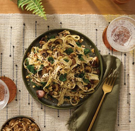 Test your pasta making skills with KitcnenAids’s Fresh Fettuccine with Mushrooms, Greens, and Walnuts recipe on Page 30