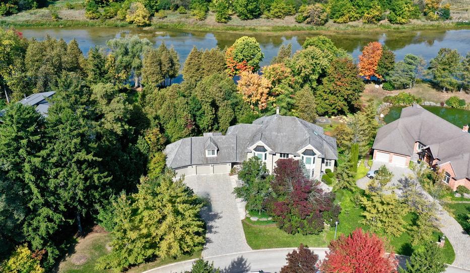 OFTEN SOUGHT, SELDOM FOUND. Welcome to ‘Edgehill Estates’. Warm & inviting 3bdrm, 2.5bth ranch Bungalow located on just under one acre overlooking the Grand River. This private oasis has an abundance of trees & blooming gardens & offers spectacular views year-round. Spacious LR/DR w/ hrdwd flrs, gas fp, floor to ceiling windows, which allows for stunning views of the property. Also, there is a W-out leading to an expansive deck. The bright, updated Kit comes w/ a breakfast bar, useful w-in Pantry & heated ceramic tile flooring. The cozy main flr FR, w/ new flooring, has a wood burning fp. The spacious Primary bdrm, w/ 4pc ensuite bth & w-out to inviting 3 season sunroom overlooking the expansive backyard. The 2nd bdrm offers a 2pc ensuite, w-in closet & a ‘Juliet’ balcony, which overlooks a beautiful Magnolia Tree. Oversized dbl garage. Roof was updated in 2014 w/ 50-yr shingles. If you need to commute, the home is located w/ convenient 401 access, & is close to all your shopping needs. If you are a golfer, you are steps away from Rivers Edge Golf course. MLS®