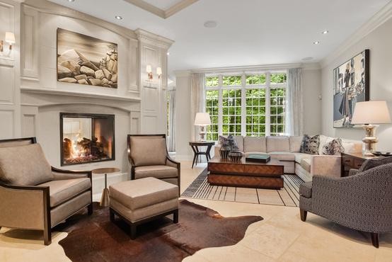 Inside, the home impresses with 10-foot ceilings and an open-concept layout that exudes both warmth and grandeur. The living room features a coffered ceiling, a cozy fireplace, and expansive windows, seamlessly flowing into the chef’s kitchen - a true entertainer’s delight. Outfitted with premium Wolf and Sub-Zero appliances, a built-in wine fridge, and a butler’s nook, this space is designed to elevate every culinary experience. A formal dining room and a professional office complete the main floor’s sophisticated yet functional design.
