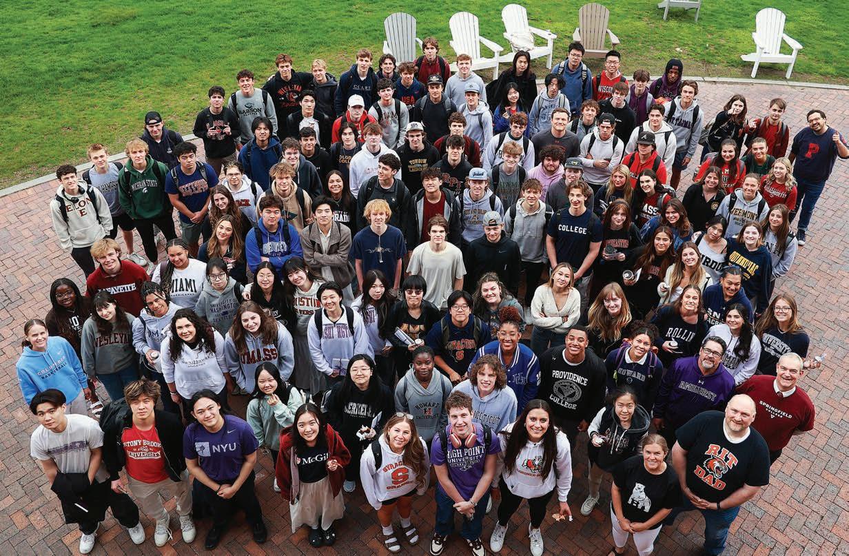 On Decision Day, the class of 2024 sports their college swag in front of the Main Building. For a complete 2024 matriculation list, see page 43.
