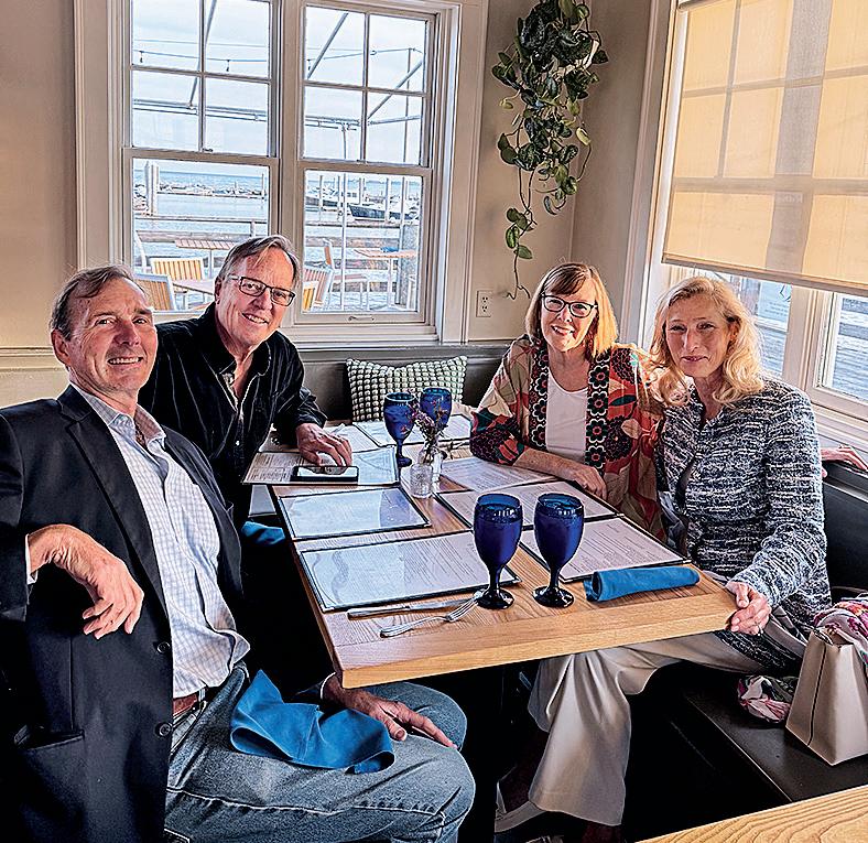 Geoffrey Little and John Montgomery, along with their spouses, Meg and Maggie, met up in their hometown of Stonington, Connecticut, on John’s way to his 50th Exeter Reunion. “My Hotchkiss 50th is coming up this fall,” Geoffrey wrote. “Tempus fugit, as Mr. Wadleigh Woods taught us to say.”
