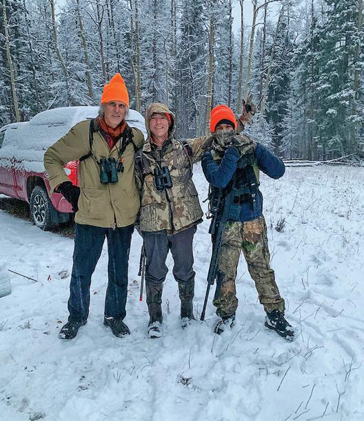 Above: Josh Carpenter ’80 with a longtime client and a longtime colead on a snowy elk hunt in northern New Mexico this past fall
