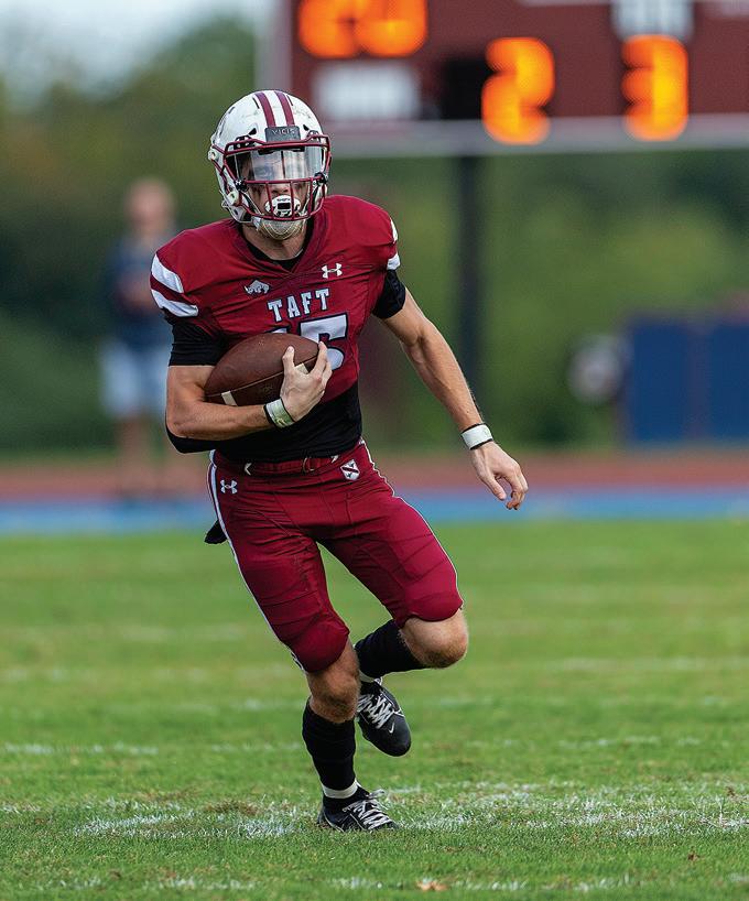 On the final day of the fall season, the Bearcats rolled in to town to take on the Rhinos during this year’s Hotchkiss Day. Taft came out on top over Hotchkiss, winning three out of five varsity matchups— football pulled off a comeback as the team scored a touchdown in the final minute of the game to go ahead 21–19, boys’ soccer won in convincing fashion by a score of 7–1, and girls’ soccer captured a victory over Hotchkiss with a final score of 3–2. Field hockey and volleyball both fell to the Bearcats, with field hockey losing a hard-fought 3–2 game in overtime, and volleyball falling 3–0 in straight sets.