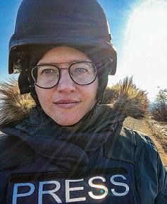 Susannah Walden ’06 on an assignment in Ukraine, near Bakhmut in Donetsk, in January 2023. Walden is the bureau chief in Kabul, Afghanistan, for global news service Agence France-Presse. See our feature “The Conflict Reporter,” on page 40 of this issue.