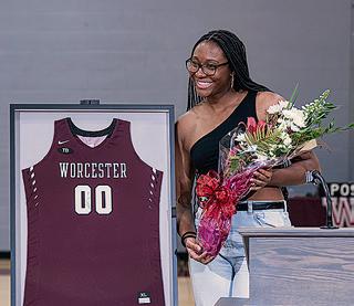 “In honor of Julie Berberian, who challenged me to be the best athlete, teammate, and person throughout my years at Worcester Academy. Her leadership, encouragement, and support have been something I have and will always cherish.”
