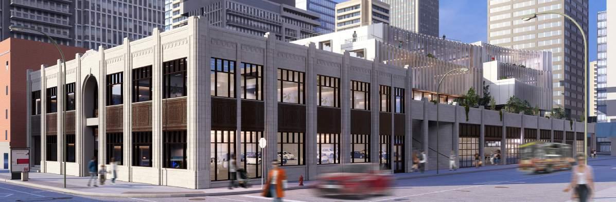 Densify the site according to city guidelines while allowing the original building to maintain its street presence.