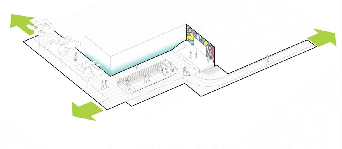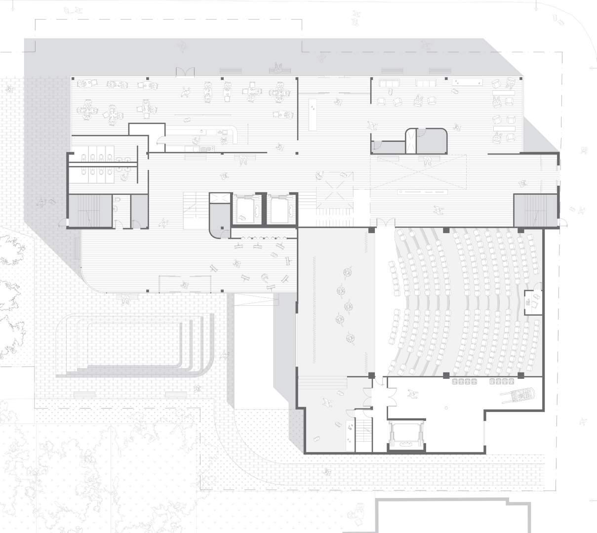 1. Informal performance space + integrated seating