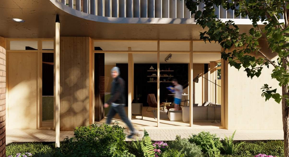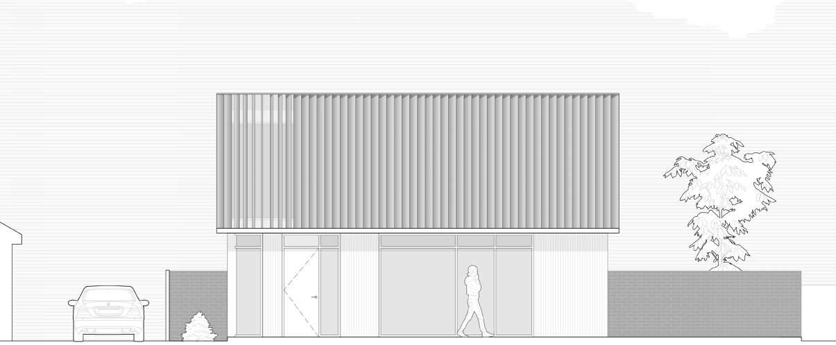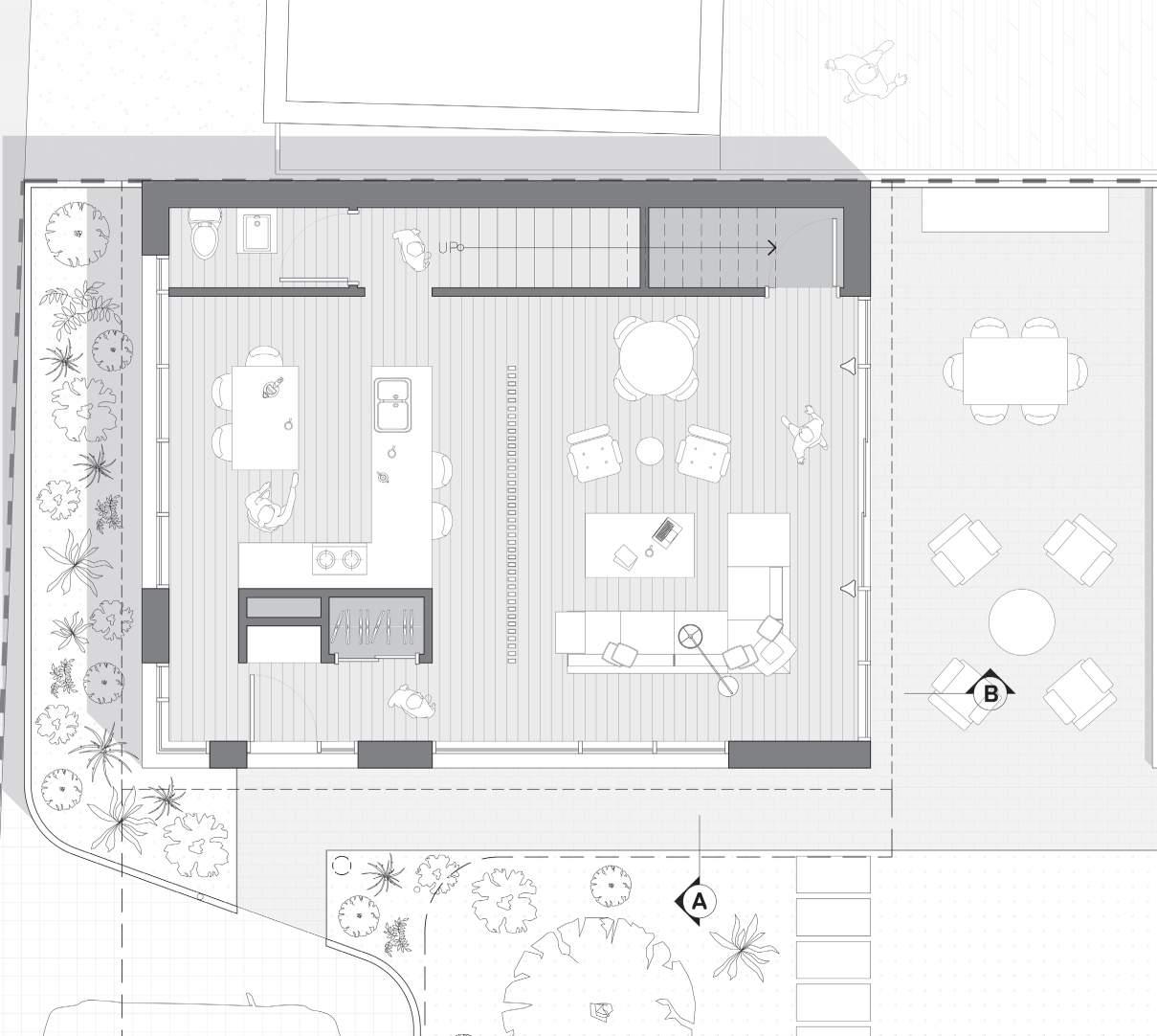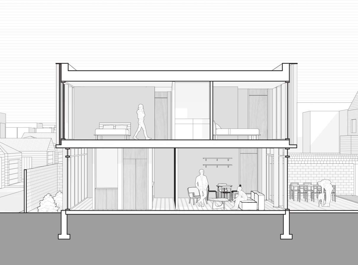 Shifting the form to the edge of the site creates a flexible space adjacent to the ground floor.