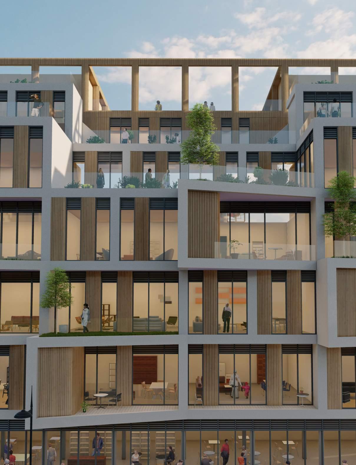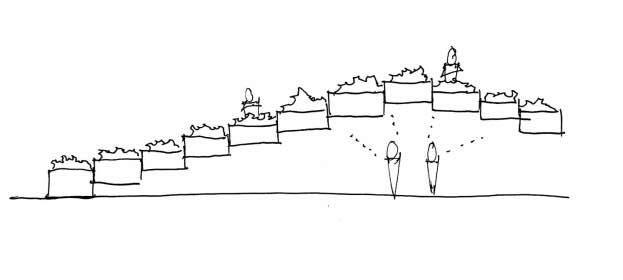 Pixelate upper floors to create green spaces above grade.