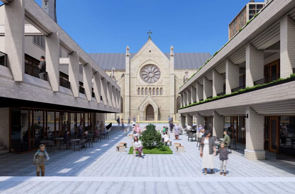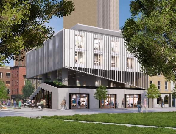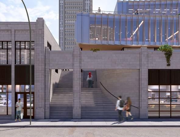 Extract a portion of the building to make way for a public space.