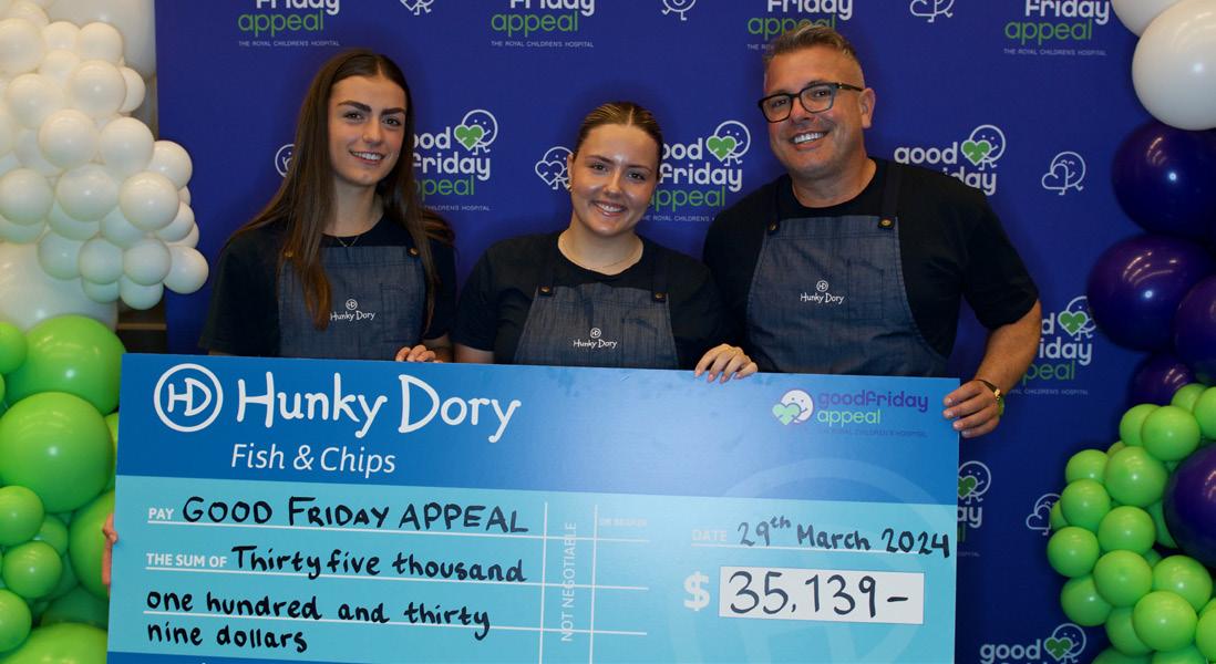 In 2024, the generous team at Hunky Dory marked eleven years of supporting the Good Friday Appeal. For every potato cake sold, $1 is donated and this, along with various in-store activities, resulted in an incredible fundraising total of $35,139, with an overall total over $190,000 since 2014.