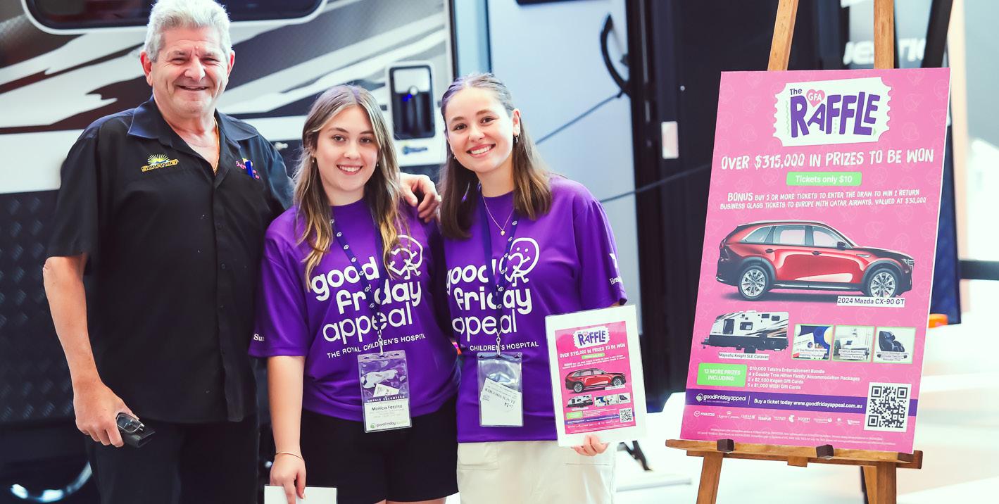 Thank you to our generous prize donors. Mazda has supported the raffle for 11 years and this year donated a CX-90, and Majestic Caravans have provided over a million dollars worth of caravans over 20 years of support.