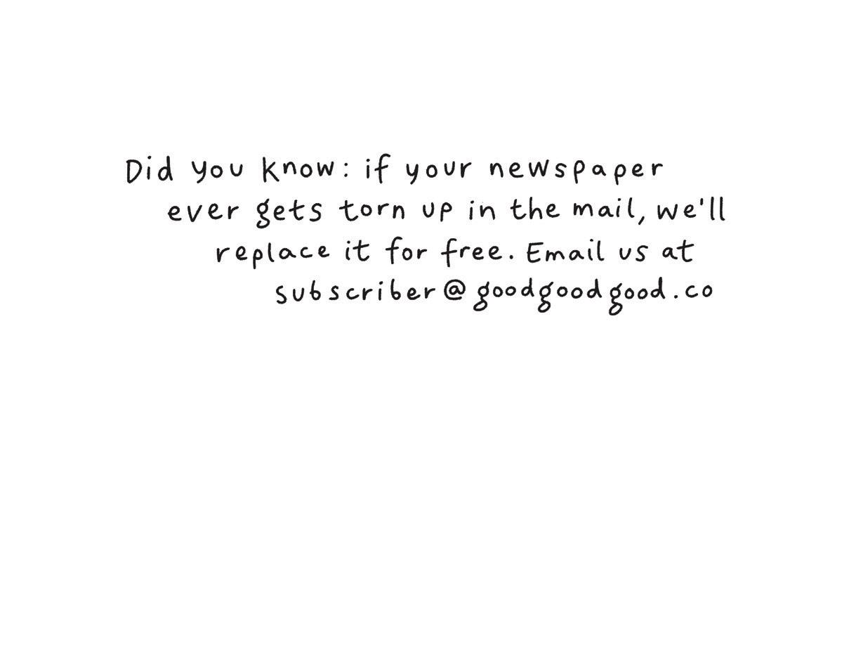 To read a different issue of the Goodnewspaper, log into your account at goodgoodgood.co and revisit some of our past issues.