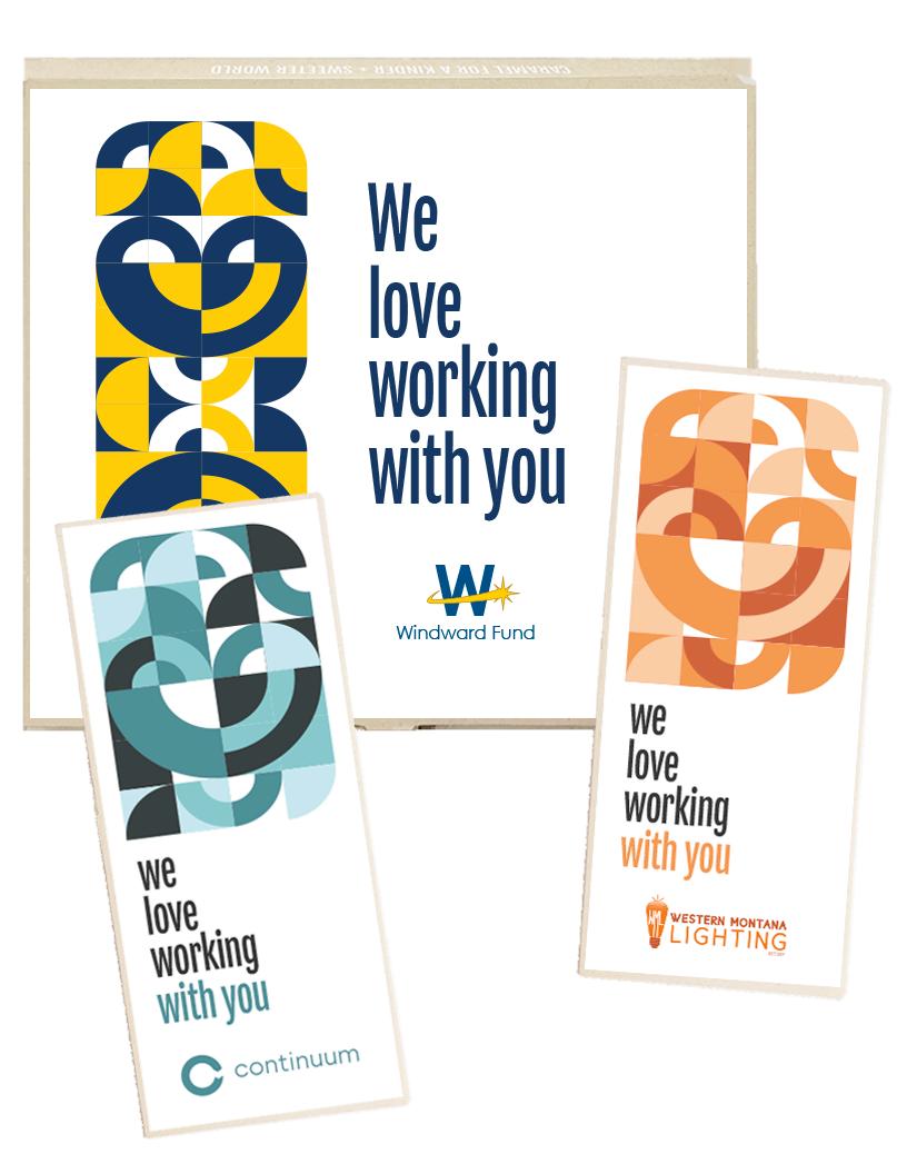 Walmart provided their own artwork for this 5-piece caramel gift box which was given to attendees of a company dinner. For companies who need to adhere to strict brand guidelines, this is a great way to go.