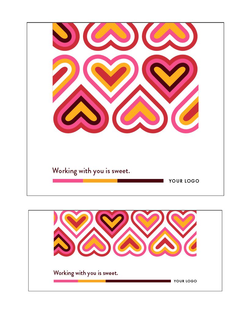 You can use the designs in this look book as a simple, turnkey custom gift (we can just add your logo), or as a jumping off point for the creation of your own unique packaging. We can change colors and wording to match your vision. Or, we can create something completely new. All of these looks may be incorporated on any of our gift boxes, regardless of size.