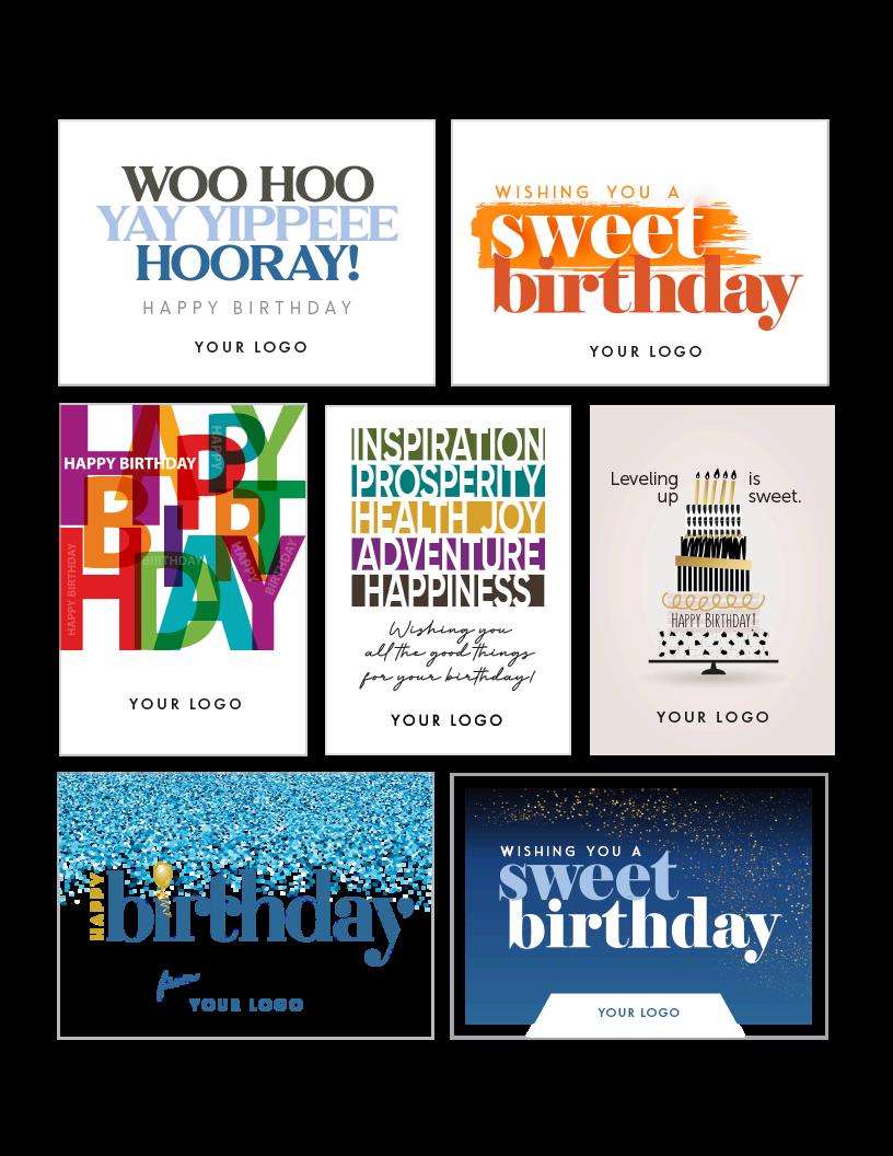 Birthdays are a perfect opportunity to remind employees and clients how much you appreciate them. We offer a turnkey, custom birthday program where you can simply “set it and forget it.” The designs on these two pages are just a few examples.