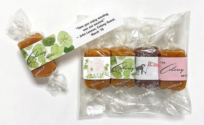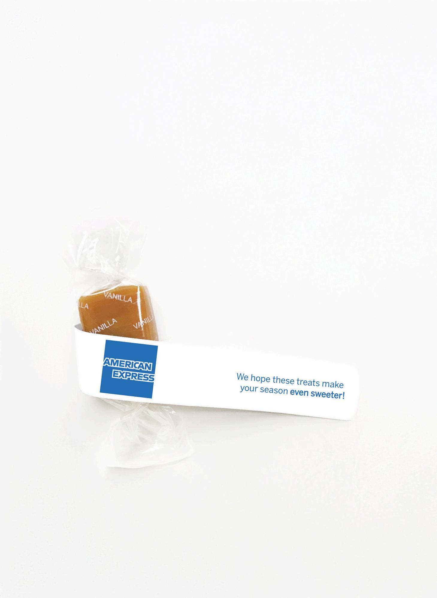 Each caramel wrapper can be entirely customized, with an option for a custom sticker on the front of each bag.