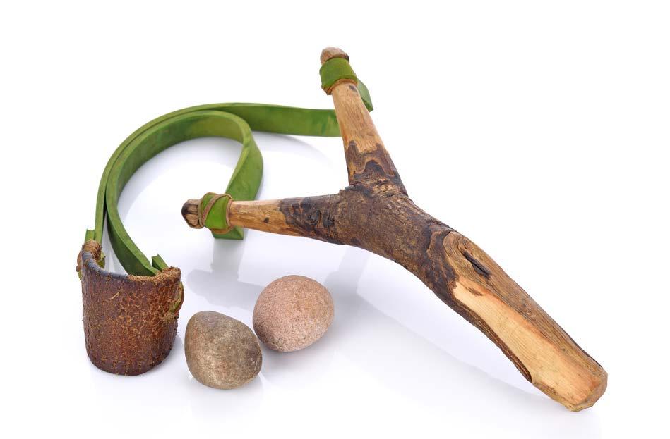 In the original David vs Goliath, the young shepherd ran toward the giant with a sling, some stones, and a stick in hand, not the usual weapons of war to