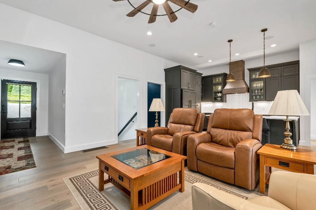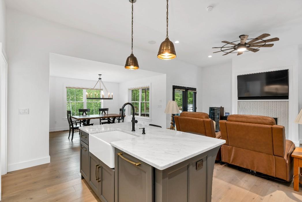 Entertain family and friends in the open living area that even extends outside through the french doors to the covered deck.