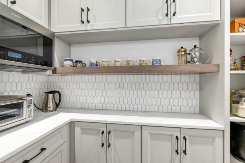 Increase your working and storage space in the huge, walk-in pantry complete with extra counter top, cabinets, and extra outlets.