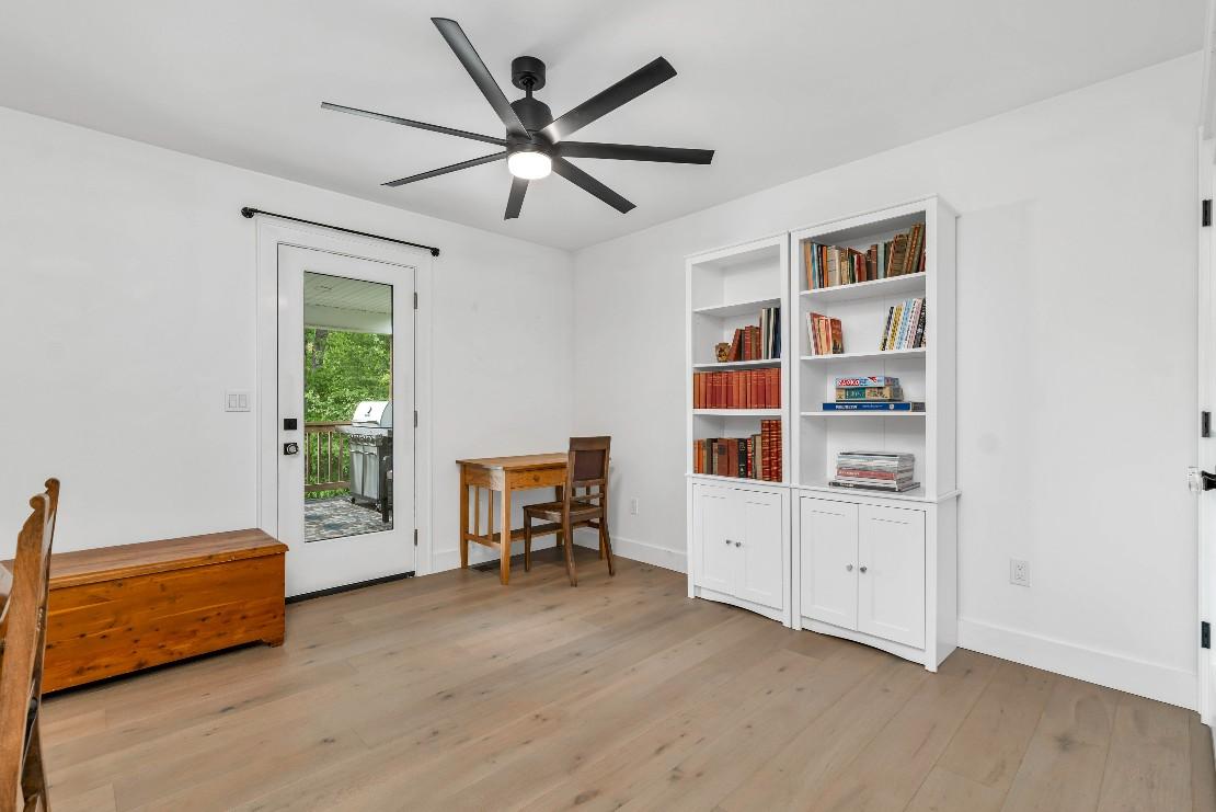 With a shared, full bath, the two additional bedrooms both have double closets with extra room for storing things out of sight as well as their own ceiling fans.