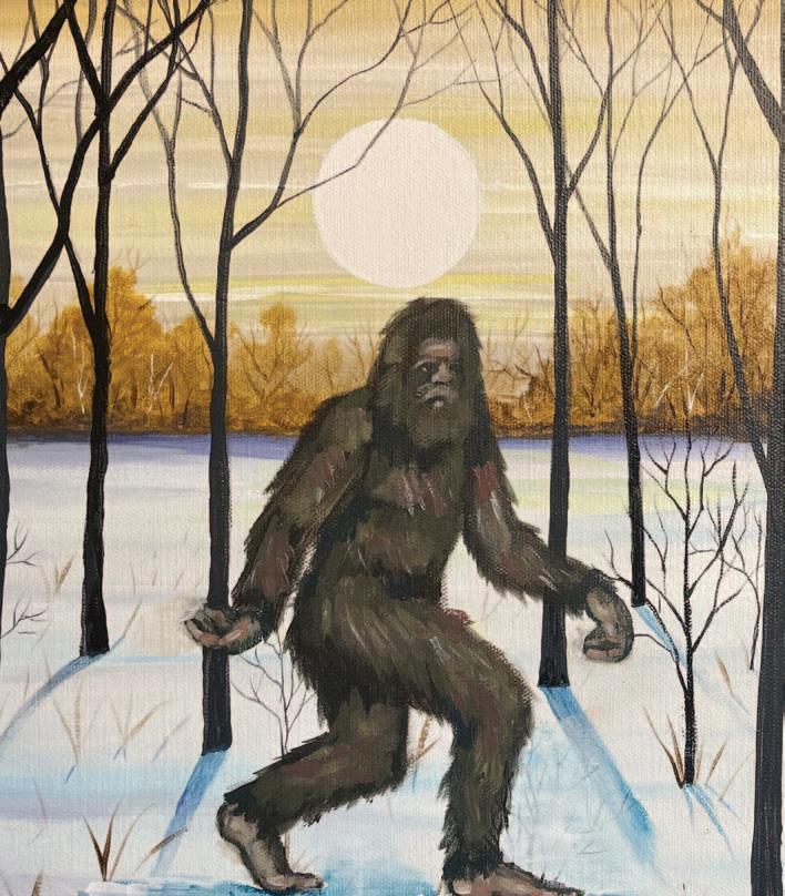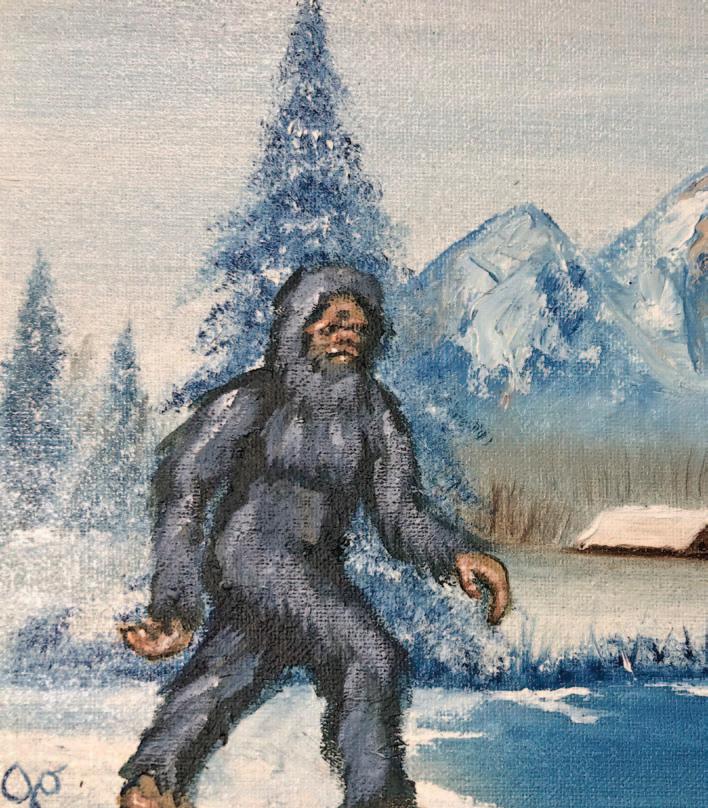 our idol. I wonder if our attraction to Big Foot our desire is actually not to be him, as some might assume, but the unconscious realization we are him. He is the shadow that we see when we are too busy to notice the people around us. They are trying to get us to stand still for just a moment to take a family photo with them for this year’s Christmas card. And what they get is the signature Big Foot pose; we’re already moving. Slow down and get in the photo. 20 original art prints are in this month’s issue of the Good News Paper.