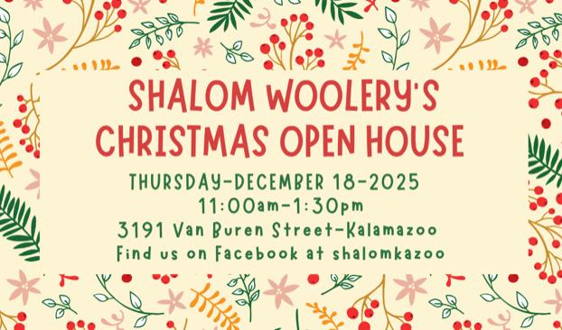 Christmas Open House,11am1:30pm, Shalom Woolery 3191 Van Buren St., Kalamazoo