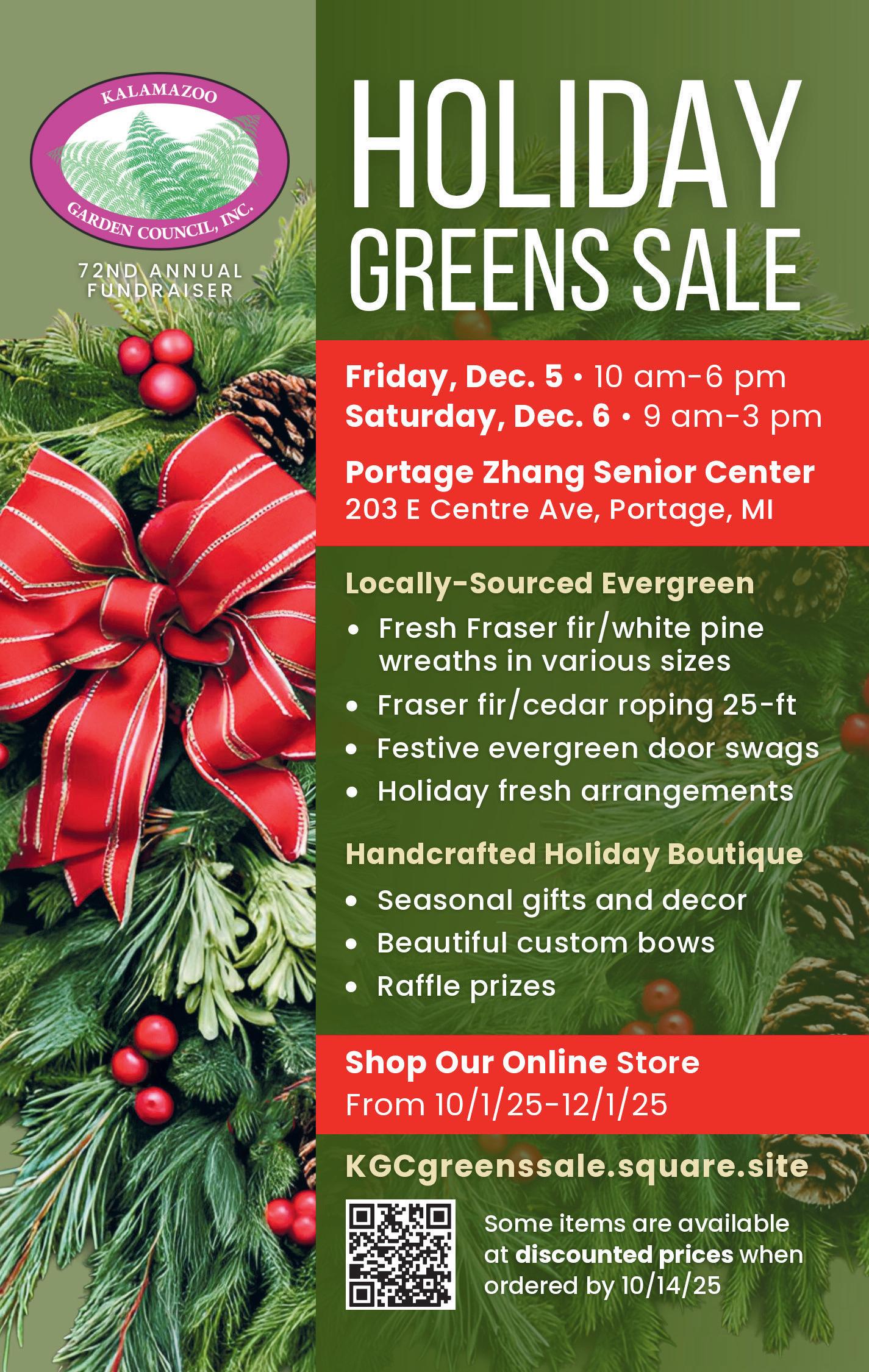 Holiday Greens Sale, Fri. 10am-6pm, Sat. 9am-3pm, Portage Zhang Senior Center
