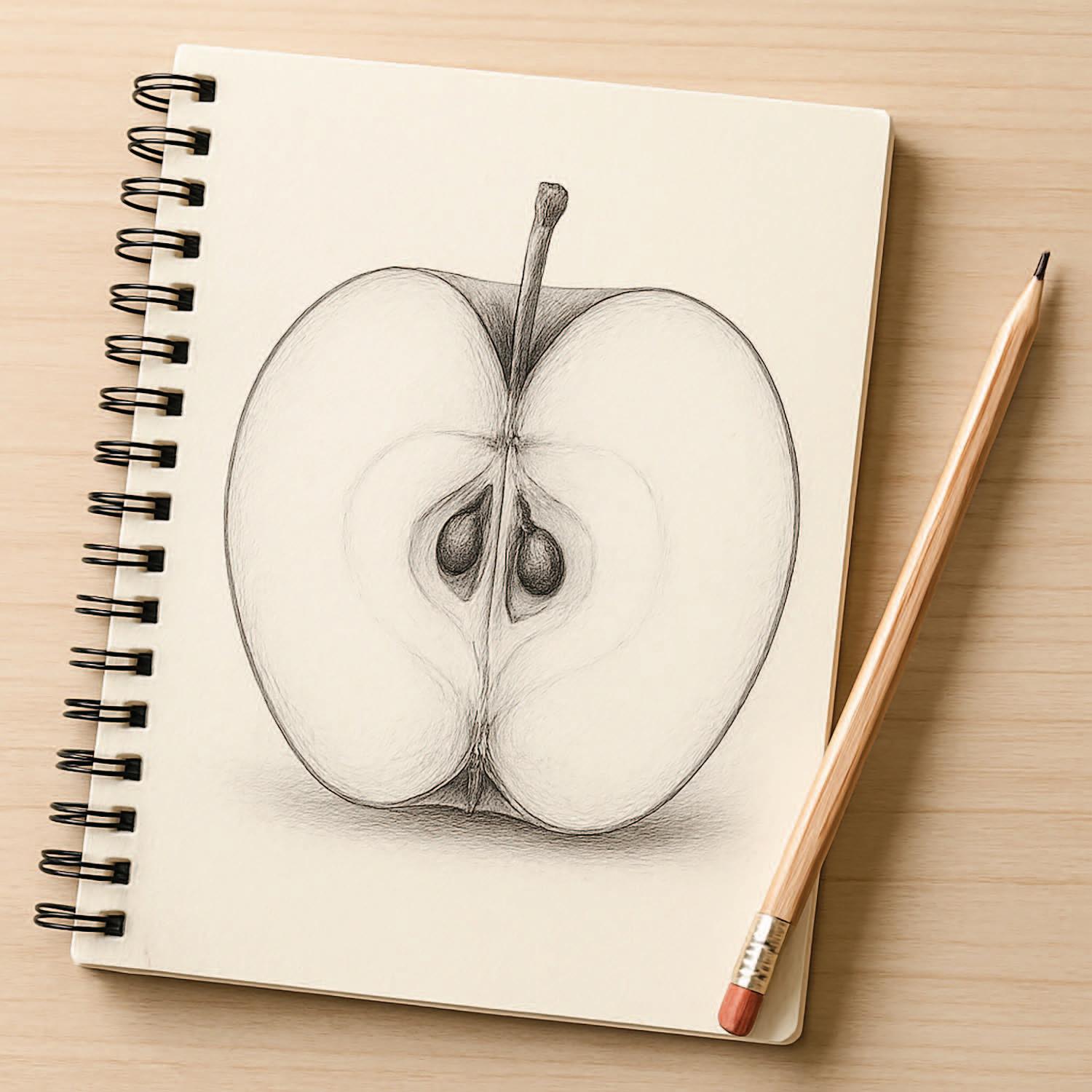 What I remember most isn’t the assignment itself—it was the feeling of being completely absorbed. It didn’t feel like work. It felt like play: a challenge filled with curiosity and discovery. I chose the apple slice. Under the lens, the apple’s simple, yet elegant, architecture came into focus—symmetrical chambers holding seeds, delicate outer skin, a stem at one end, sepals at the other. At that moment, I wasn’t just looking, I was seeing.