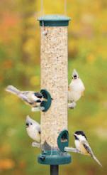 multiple perches to accommodate more birds. Sock-style feeders are also popular.