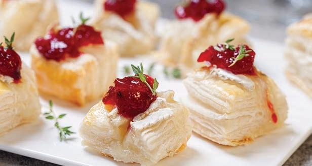 • Place a small cube of Brie cheese in the center of each puff pastry square. Brie adds a creamy, rich texture that pairs wonderfully with the tartness of the cranberry sauce.