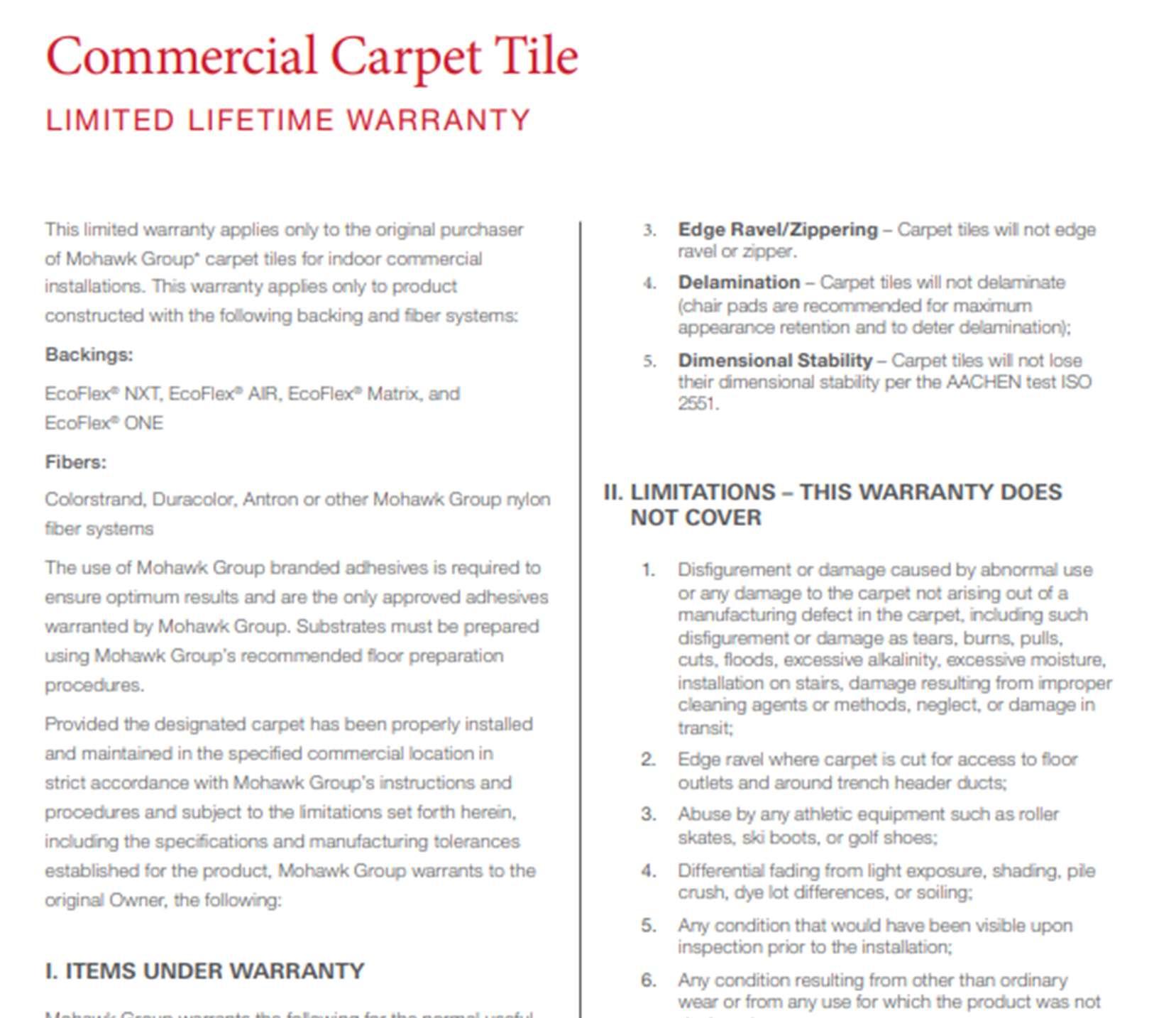 Warranties: LifetimeLimitedCarpetTileWarranty