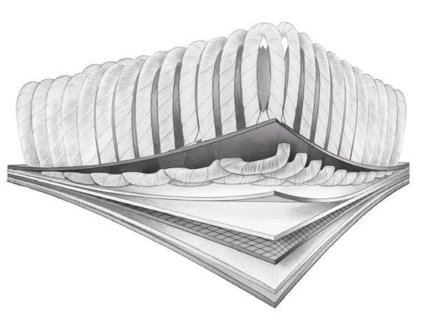 Fluidity in motion is beautifully captured in . This innovative carpet tile range evokes the sensation of movement through a fluid, abstract maze.