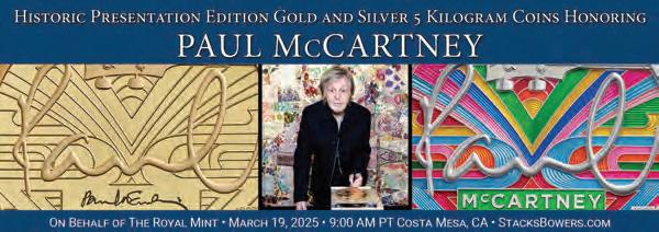 For more information about these historic Presentation Edition coins or to register to bid in the auction, please contact Stack’s Bowers Galleries at Info@StacksBowers.com or 800-566-2580 or visit www.StacksBowers.com/ PaulMcCartney.