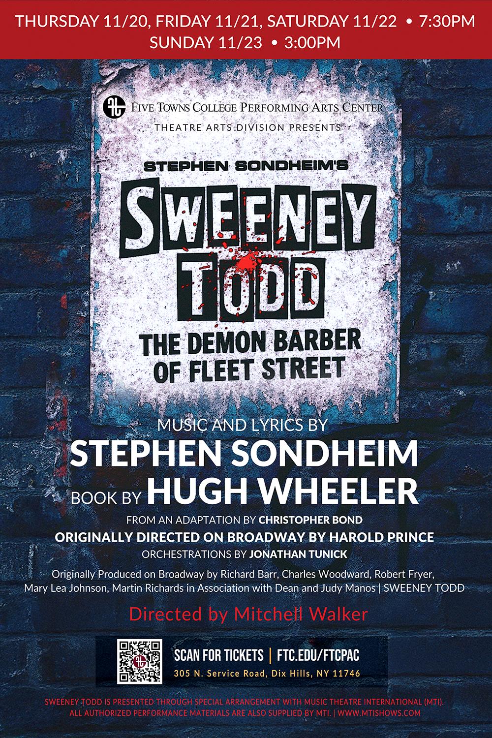 It will take place at Five Towns College Performing Arts Center, 305 N. Service Rd., Dix Hills on November 20 - 22 at 7:30pm, November 23 at 3:00pm. Ticket Purchases: https://www.ftc.edu/ ftcpac/