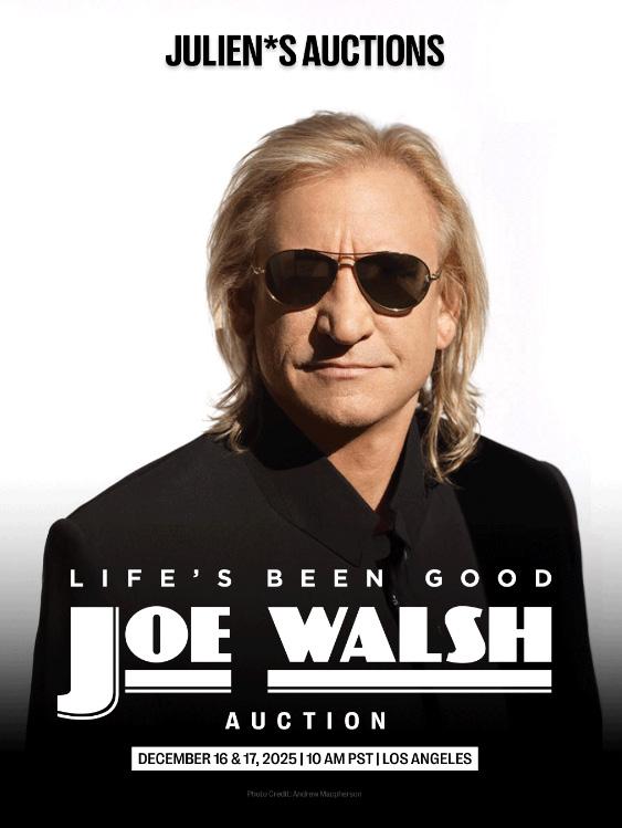In advance of the upcoming auction, “Life’s Been Good: Joe Walsh”, taking place December 16 and 17th in Los Angeles, Julien’s announced two exclusive limited-edition box sets celebrating Walsh’s legendary career and the collection being offered. Each box set includes a collectible card that plays Walsh’s iconic hit “Life’s Been Good”, when opened, creating a unique, interactive keepsake for fans and collectors: