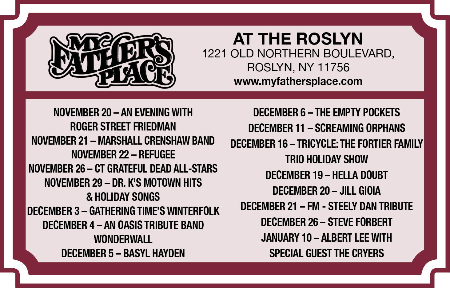 November 23 at 7pm Box Office Hours: Mon - Fri, 12 Noon to 5pm 516.767.6444