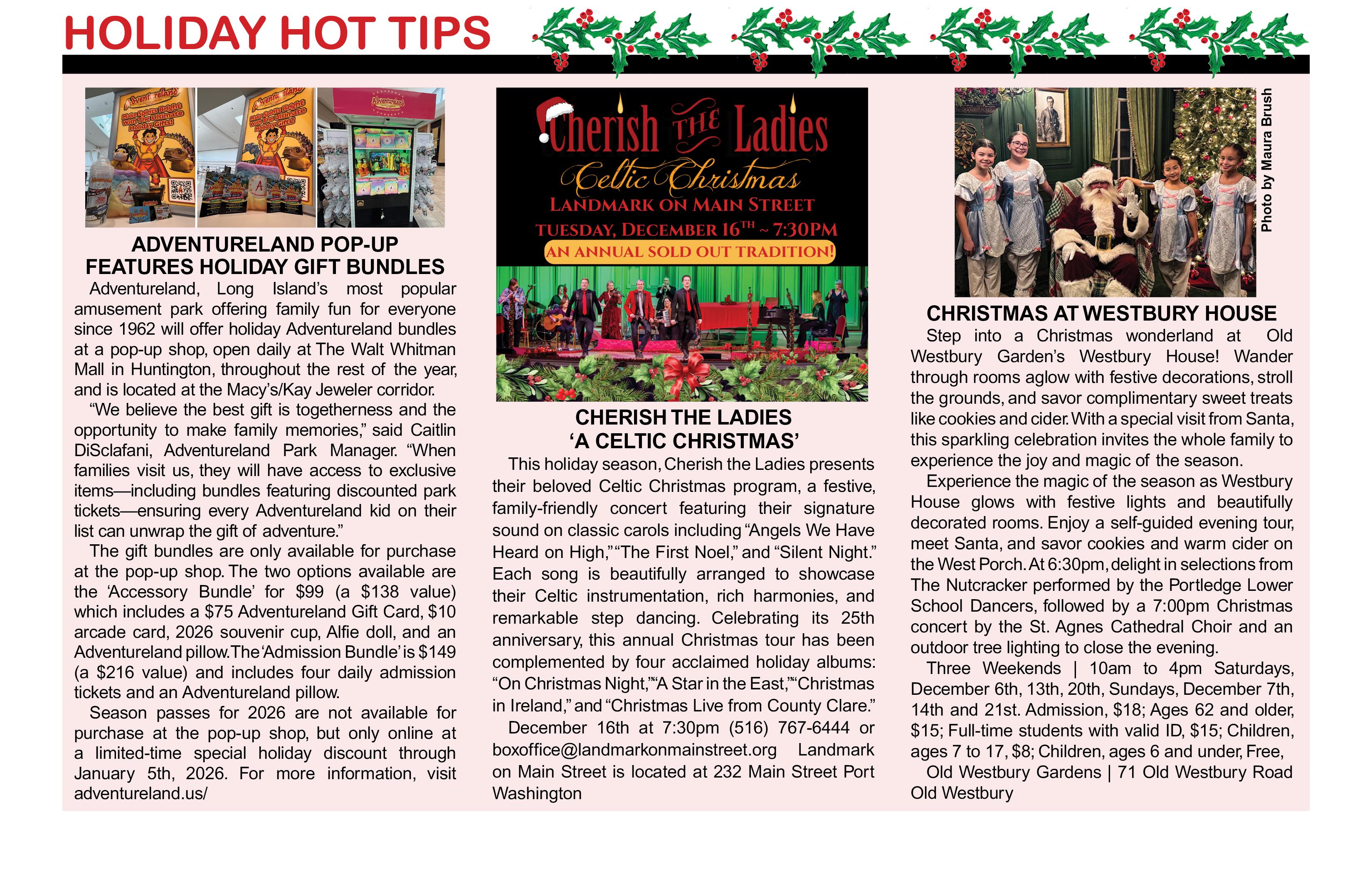 Tickets are $61-$81 including fees and can be purchased in person at 71 East Main Street in Patchogue, by phone at 631-207-1313, or online at: https://ci.ovationtix.com/34780/ performance/11719051 and https://ci.ovationtix. com/34780/performance/11719052