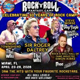 The 2026 camps feature legendary headliners including: Roger Daltrey (The Who), Stewart Copeland (The Police), Tommy Lee (Mötley Crüe) Together, these artists represent three of the most influential bands in rock history — making this anniversary year a true dream lineup for music fans worldwide. Full dates and talent details are available at rockcamp.com.
