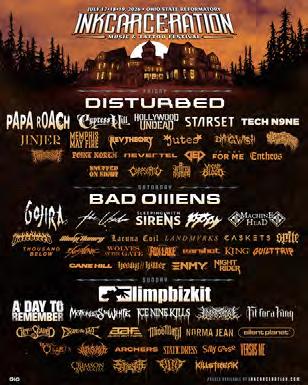 If anyone wondered how Inkcarceration Festival might top last year’s recordbreaking event that drew in 90,000 music fans, all it takes is a look at the lineup for the 2026 edition. More than 65 bands will take over the historic Ohio State Reformatory grounds in Mansfield, Ohio on July 1719, led by: Friday, July 17: Disturbed, Papa Roach, Cypress Hill, Hollywood Undead, Saturday, July 18: Bad Omens, Gojira, The Used, Sleeping with Sirens, Sunday, July 19: Limp Bizkit, A Day To Remember, Motionless In White, Ice Nine Kills.