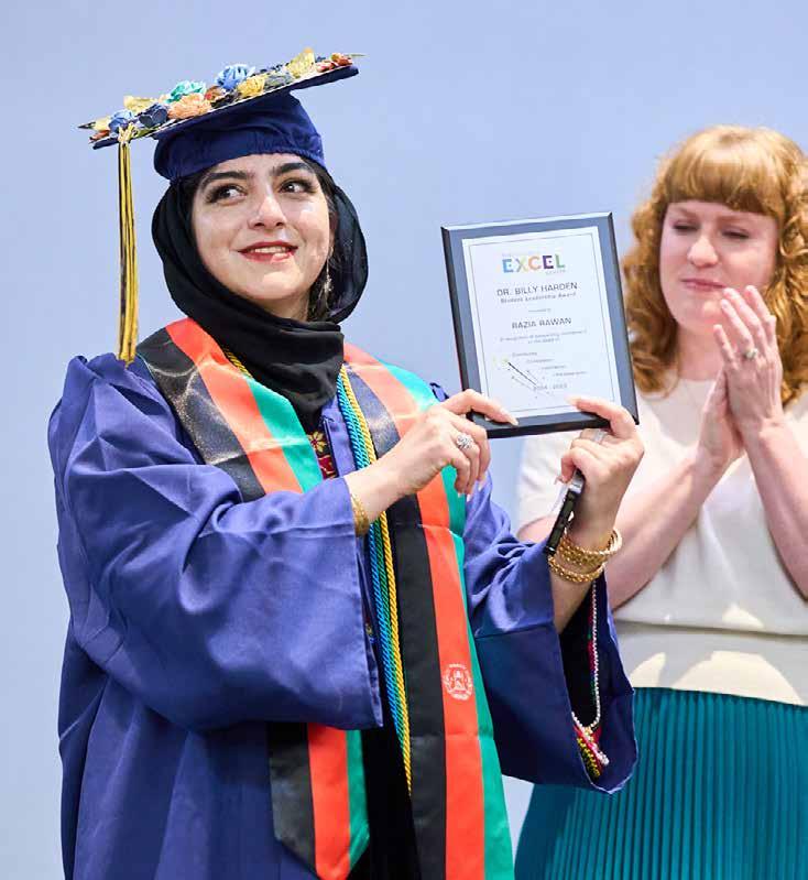 Razia went on to detail how her first days at the Excel Center went, and the encouragement she received from her sister and brotherin-law. “When I came home from my first day at the Excel Center, my sister asked about my day. I started to cry and told her, ‘It was good. The teacher was so helpful and kind to me, but it was also frustrating because I knew what the answers were but couldn’t explain it to them.’”