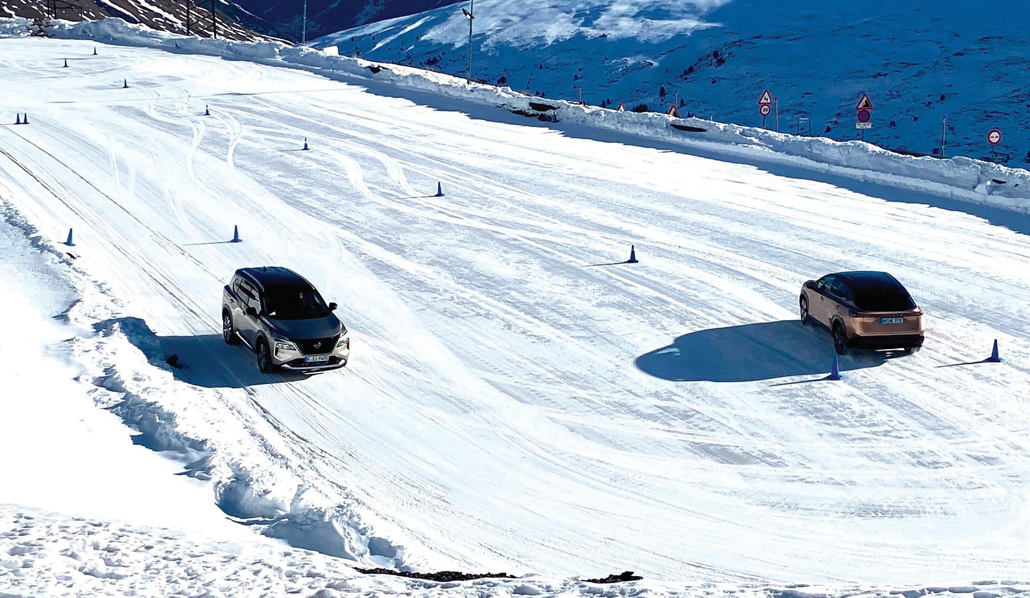 Det giver en næsten overnaturligt god accelerationsevne på den spejlglatte bane. Mens man i mindre avancerede firehjulstrækkere skal være uhyre påpasselig med at give gas ud af kurverne, er det barnemad at komme lynhurtigt ud af kurverne i denne bil, hvor ”big Brother” hele tiden regulerer de trækkende hjul og bilens bevægelser. Systemet har en 10.000 gange hurtigere momentrespons til hjulene i forhold til et mekanisk 4WD-system. Nissan kalder systemet for intelligent e-4ORCE. Testbilen er fjerde generation af X-Trail, der med et totalt salg på næsten syv millioner eksemplarer er en af verdens mest populære firehjulstrækkere.