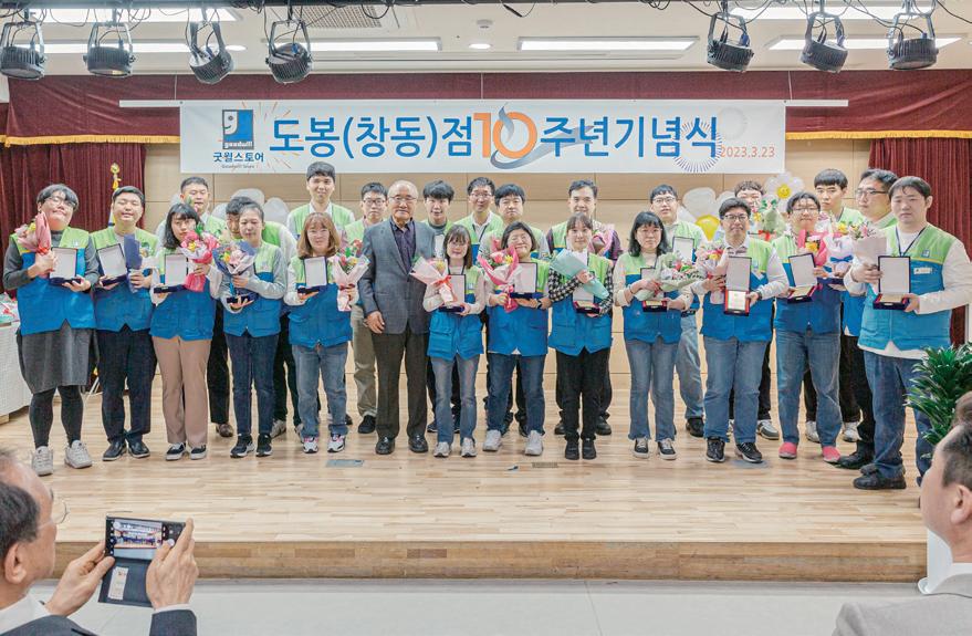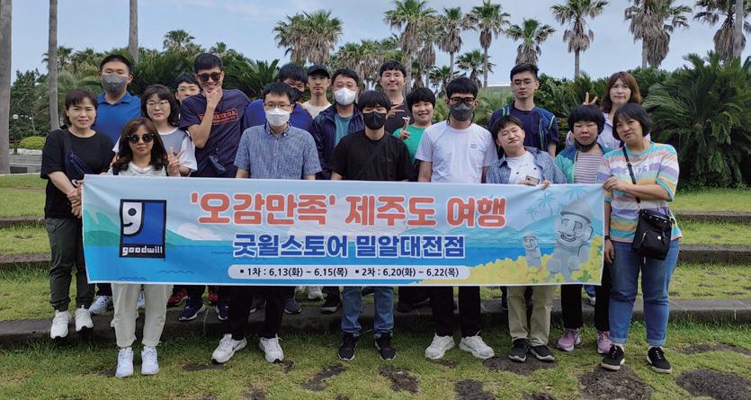 지점에 오셔서 물품을 기증해 주셨으면 좋겠습니다. 03 여는 글 자선이 아닌 기회를 더 만들어 가는 곳으로 든든히 세우고 싶습니다 04 장애인 인식개선 장애인, 비장애인과 함께한 굿윌전국체전, ‘느려도 괜찮아, 즐거우면 되잖아!’ 06 장애인 인식개선 장기근속의 꿈, 우리가 해냈어요! 08 필(必)환경 우리 주변 ‘도시숲’이 더욱 늘어나야 하는 이유? 09 굿피플 장애인 직원과 함께 일하는 것이 행복해요! 10 함께하는 가족 “슬픈 졸업식이 이렇게