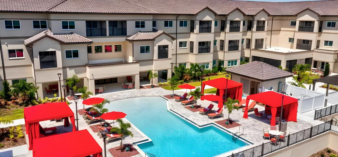 allows residents the freedom to personalize their lifestyle according to their preferences. There are several floorplans across the facility for residents to choose from. Features like a zero-entry heated outdoor pool and poolside cabanas, al fresco dining areas and a beautiful landscaped courtyard, coupled with the grand clubhouse really adds to the social aspect of this community. It encourages residents to get out and mingle.