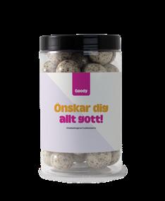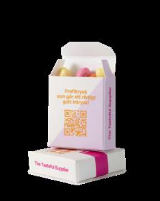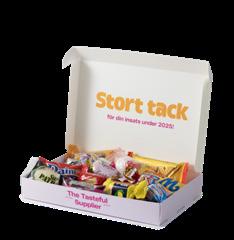 Välj mellan ett brett urval av produkter och designa en förpackning som låter ert företag glänsa i rampljuset! Ställ fram produkterna på mässor, dela ut till samarbetspartners och kunder. Vårt reklamgodis ger er möjligheten att med ett personligt uttryck marknadsföra ert varumärke med godsaker av bästa kvalité.