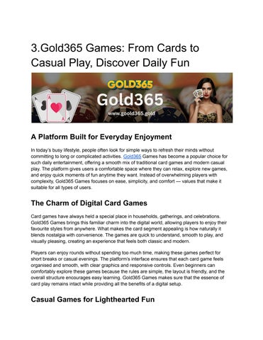 Goold365 is a dynamic online gaming and entertainment platform offering a wide range of games, from cricket and football to popular card and arcade titles. With a user-friendly interface and reliable performance, Goold365 caters to casual players and gaming enthusiasts alike. visit the website: https://goold365.gold/